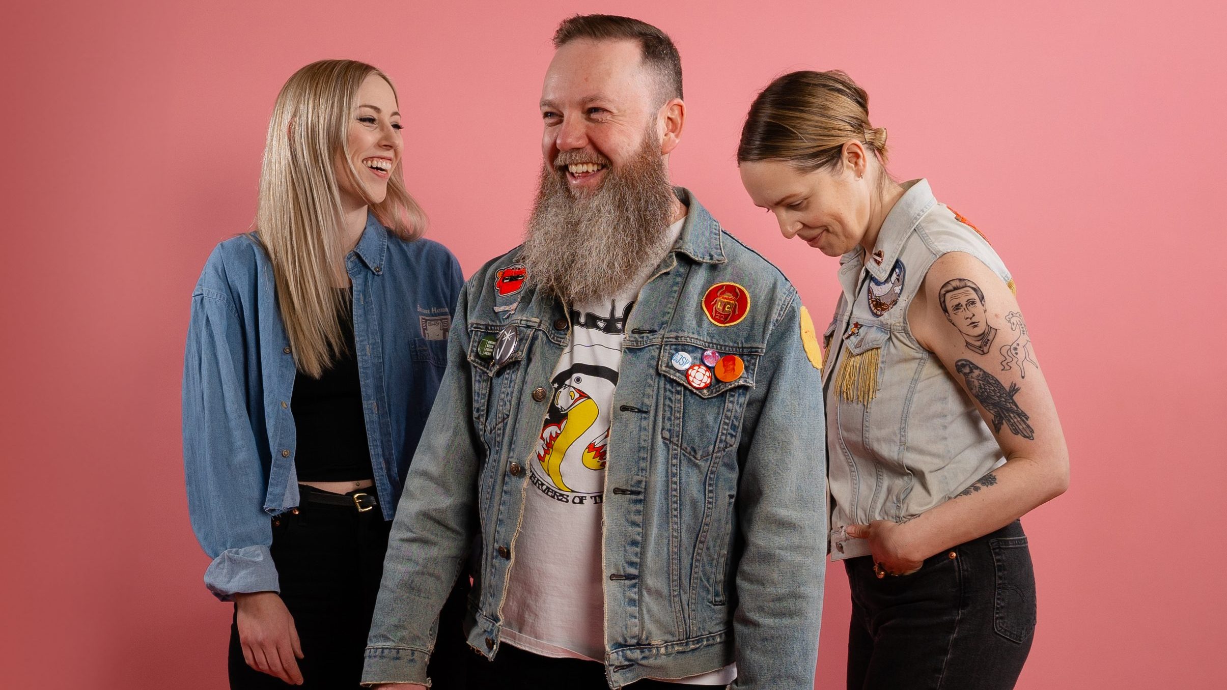 Guitarist/songwriter Tyler Stewart (Starpainter, Atomicos) and drummer Bre Day (Peace For Bombs) are a couple, and their White Stripes-esque beginnings were originally just a fun extension of their relationship and desire to try new things. In 2013, they played their first official gig, which led to a flurry of activity and the eventual release of Denim Tape in 2016. After a little break that ended up flowing right into the pandemic, the duo started picking things up again in 2024. Feeling the the need to fill in both the low and high end of the group sound, they invited local singer-songwriter & musician Bailey Kate into the fold. While initially signing on to “maybe sing some harmonies,” Stewart recalls, “one day she just showed up at practice and had learned all the bass lines, so that was that!”
